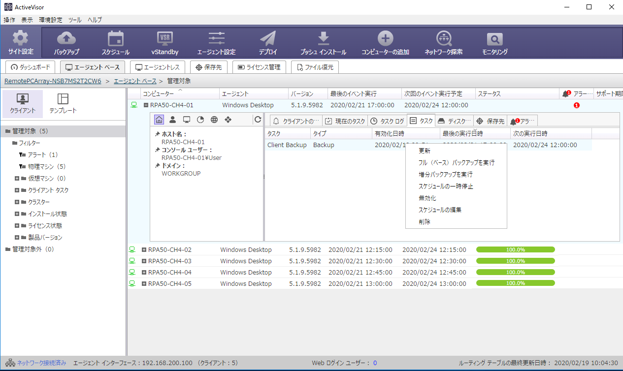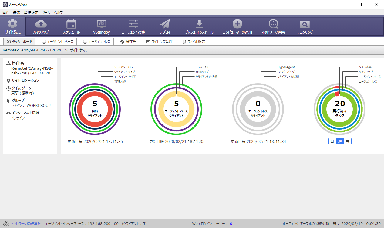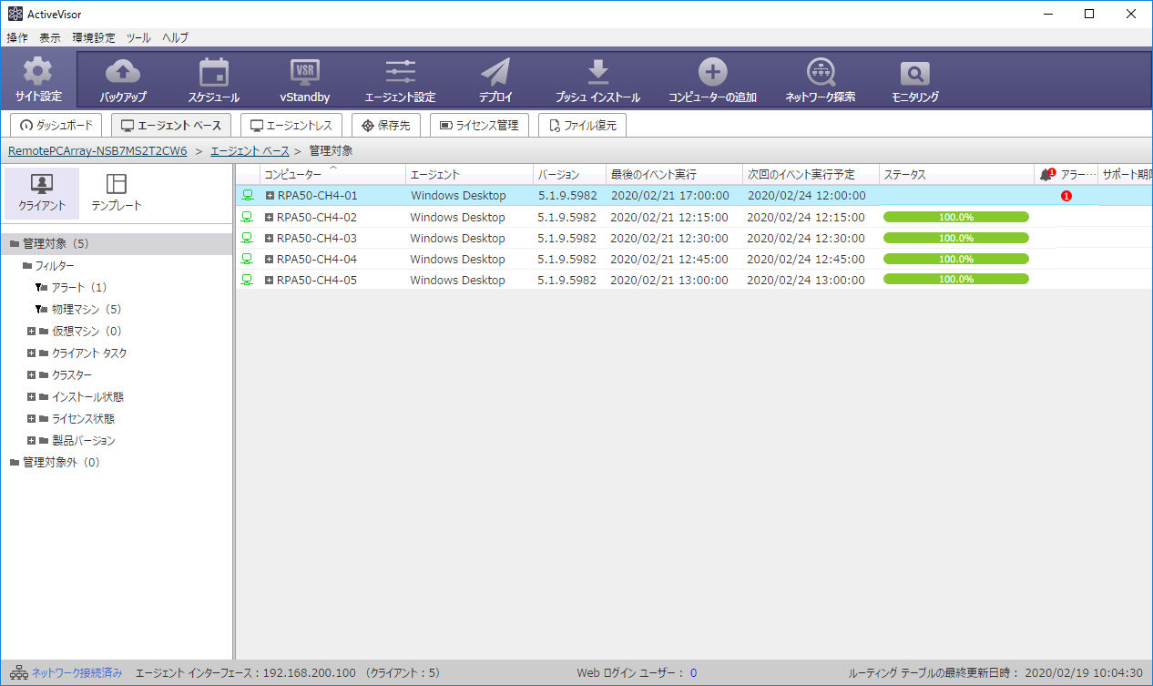 【ActiveVisor –RE】の中心となる機能として、バックアップやエラーの状況を一覧で確認することができます。