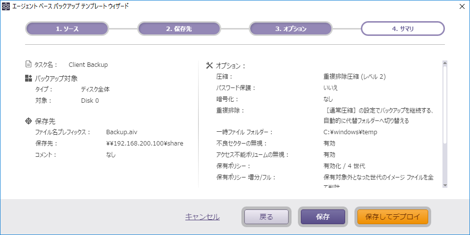 - 保存先の容量を大幅に縮小! 重複排除圧縮機能