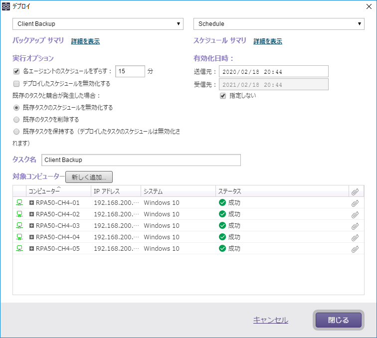 - バックアップスケジュールの状況確認(一覧 & グラフ)