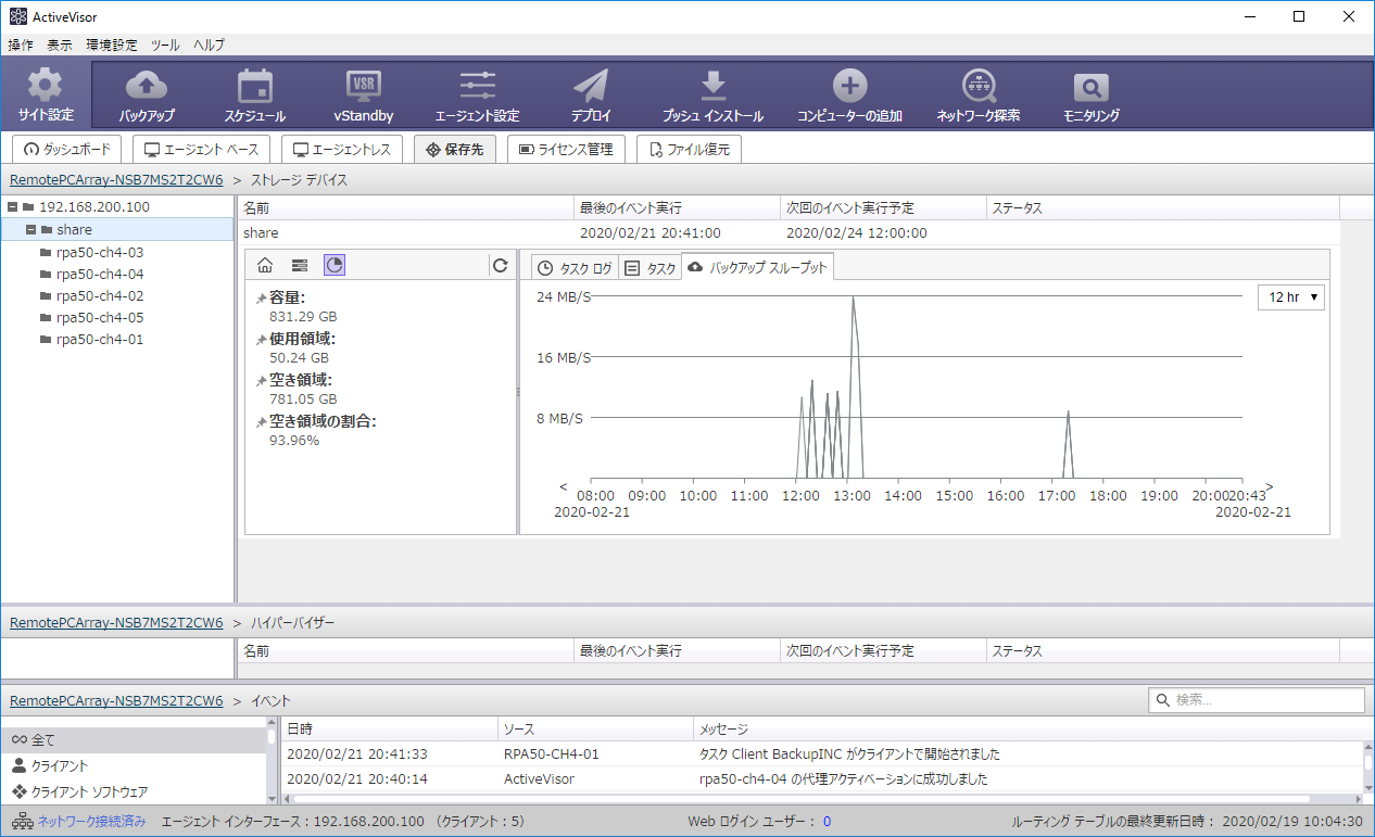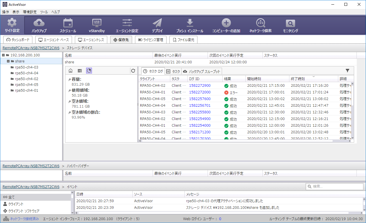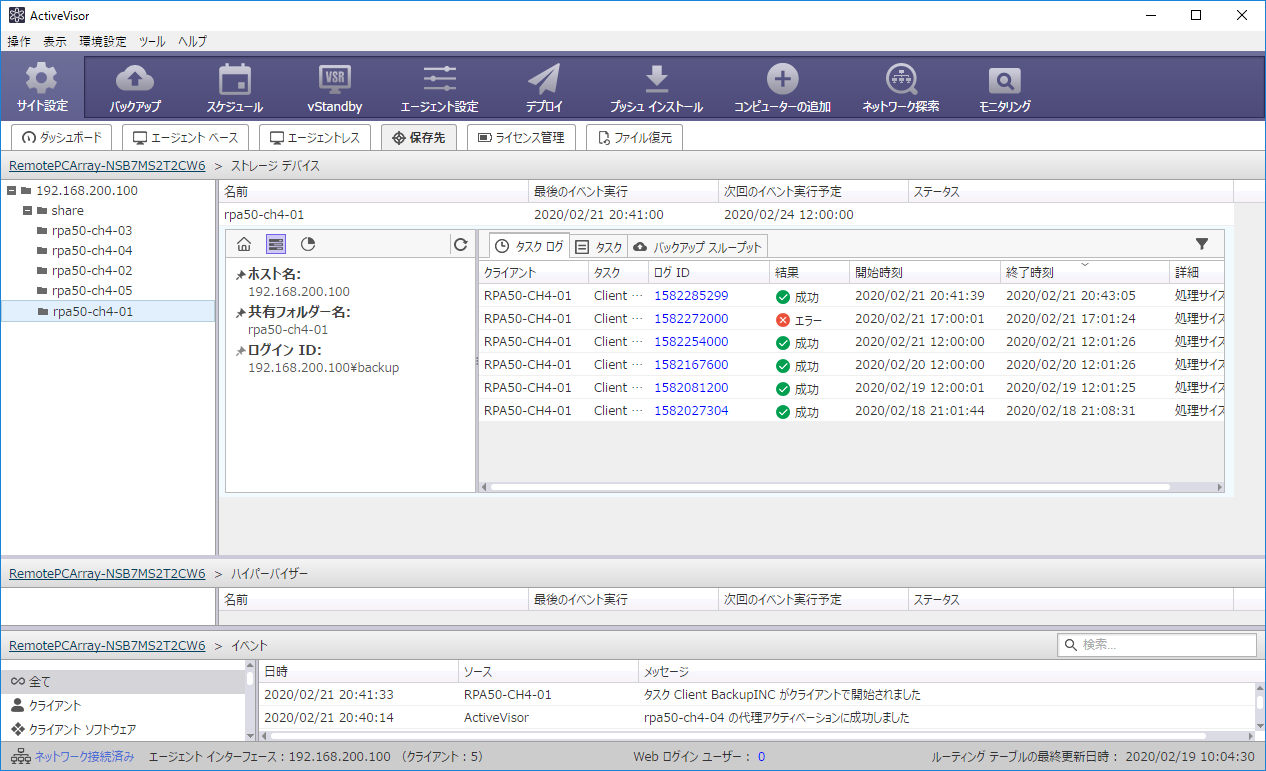 バックアップ保存場所 & 集中管理コンソール【ActiveVisor –RE】