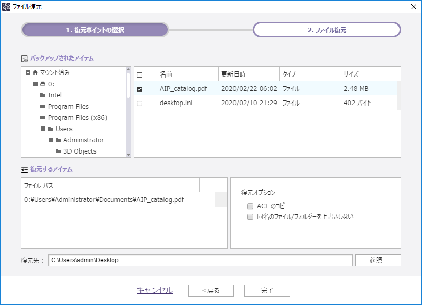 - ActiveImage Protector 2018-RE 便利な新機能編 ①ファイル復元